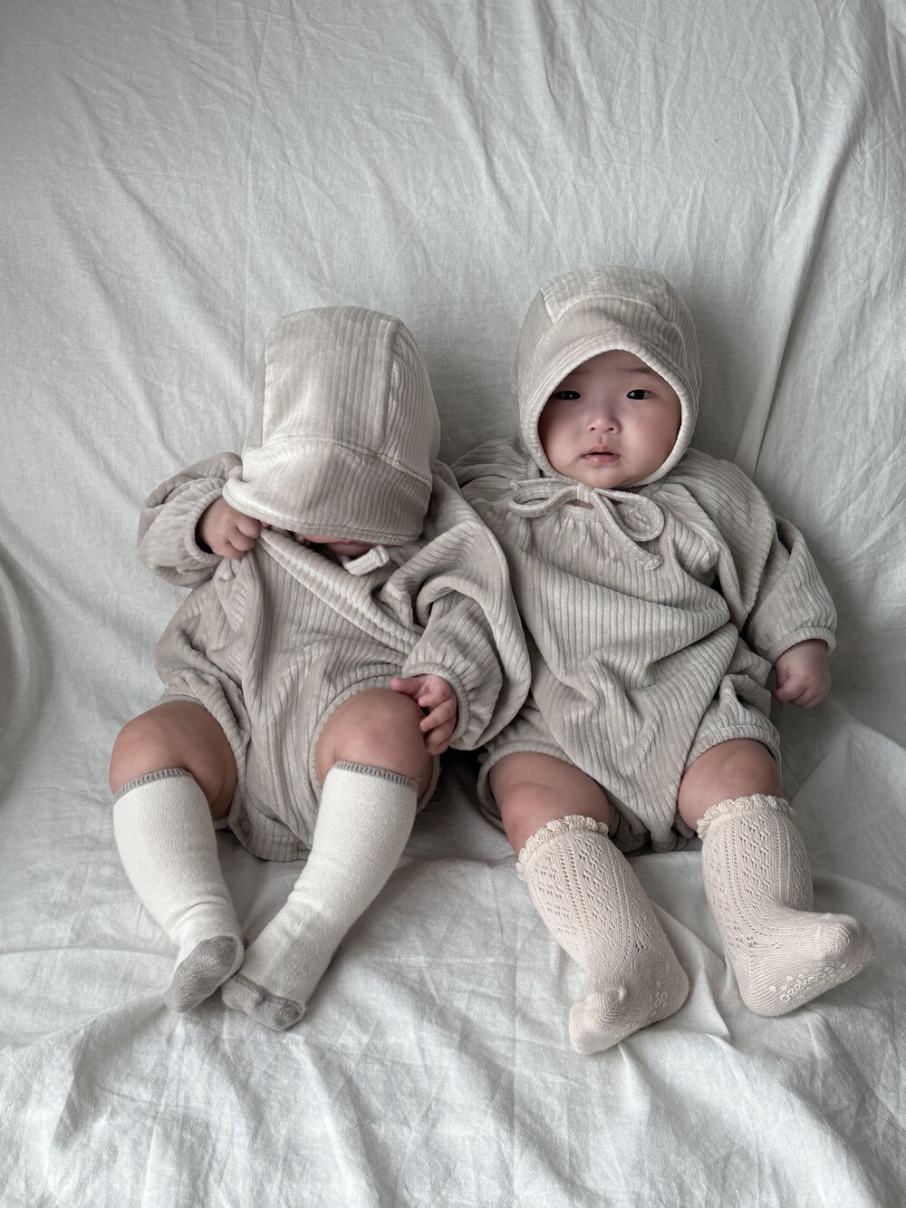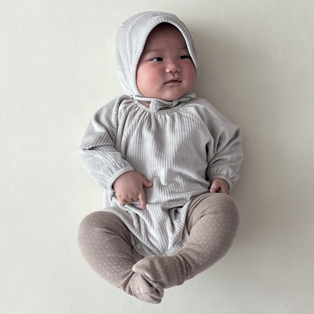 결에 따라 짙은 컬러감을 내는 벨벳원단으로, 정말 고급스러운 소프트벨벳바디수트! 아이들 단독으로 착용해도 될만큼 부드러운 촉감을 느껴보셨음해요. 튀어나온 박음질이 없어 아이들 편하게 착용가능합니다.