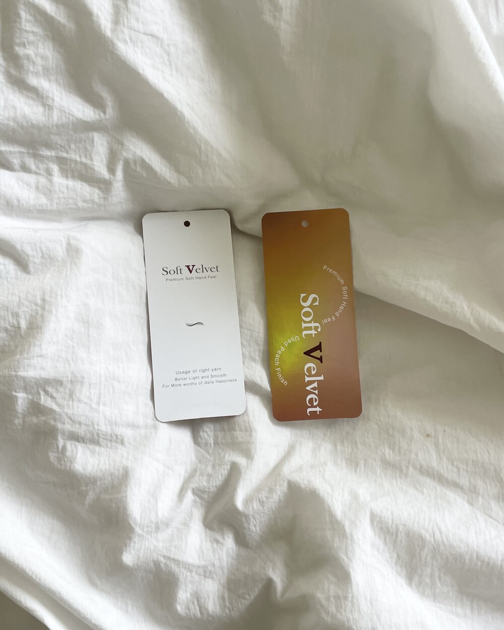 프리미엄 소프트벨벳 원단으로 소프트벨벳 라벨 행택이 달려져 있습니다.