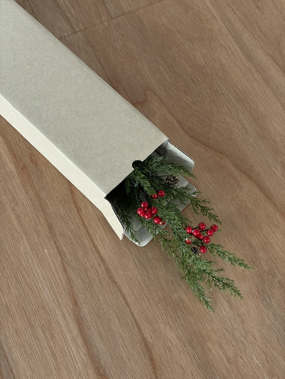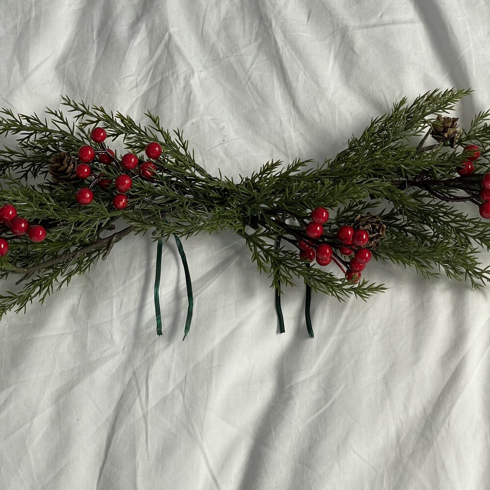 빨간 열매/솔방울이 섞인 빈티지무드 컬러의 가랜드입니다.
